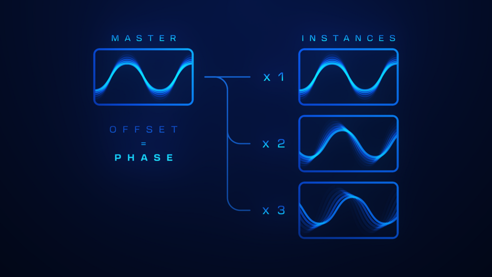 Also included are the Master and Instance presets, which are set up to easily create complex systems that can take advantage of the Property Offset parameters.